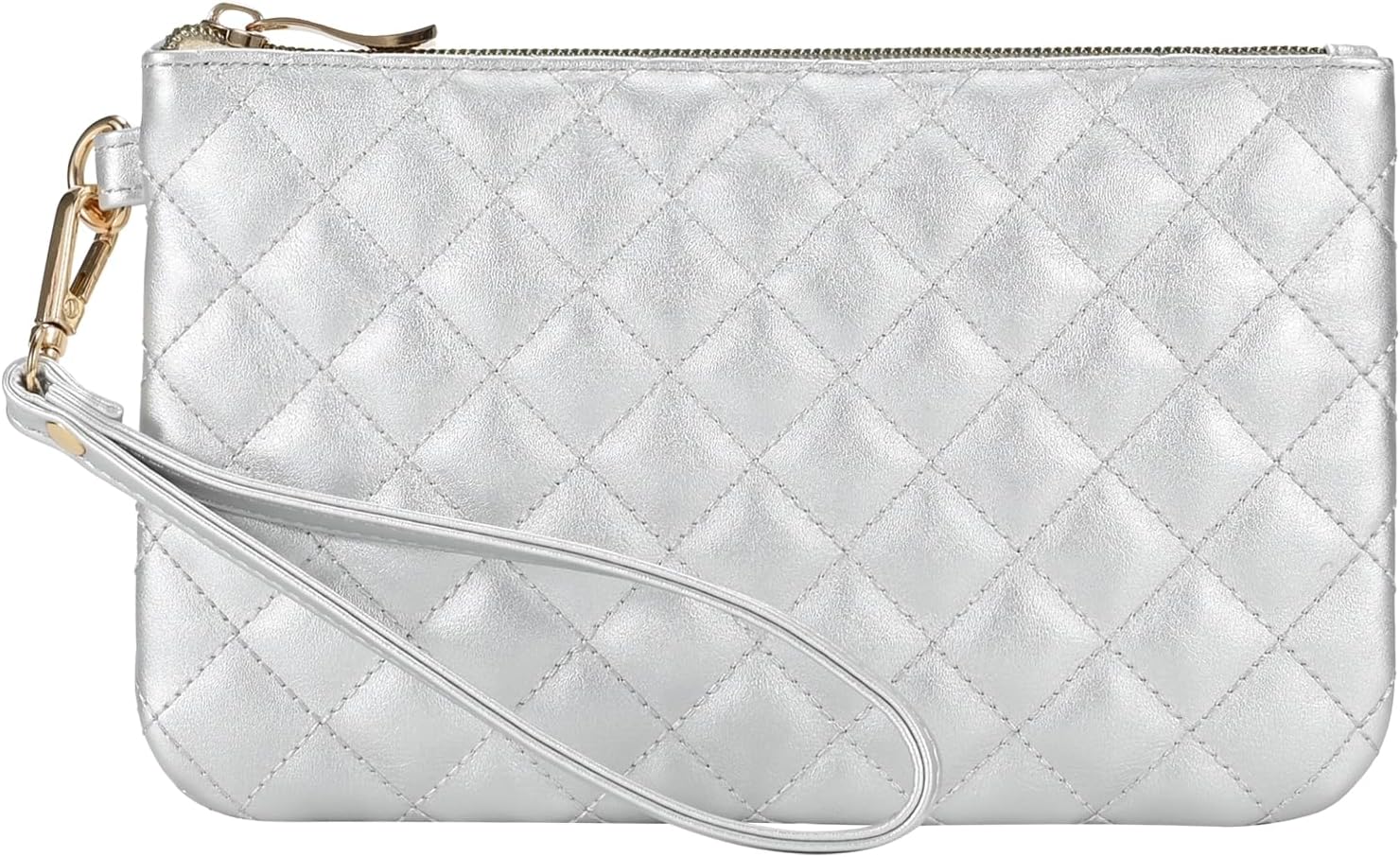 Quilted Wristlet Purse for Women, Vegan Leather Wristlet Pouch Zip Clutch Bag, Evening Clutch Purse with strap