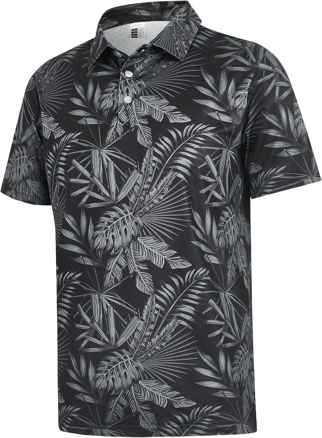 ELETOP Men's Golf Polo Shirts Short Sleeve Moisture Wicking Hawaiian Tropical Polos Performance Golf Shirts for Men Dry Fit