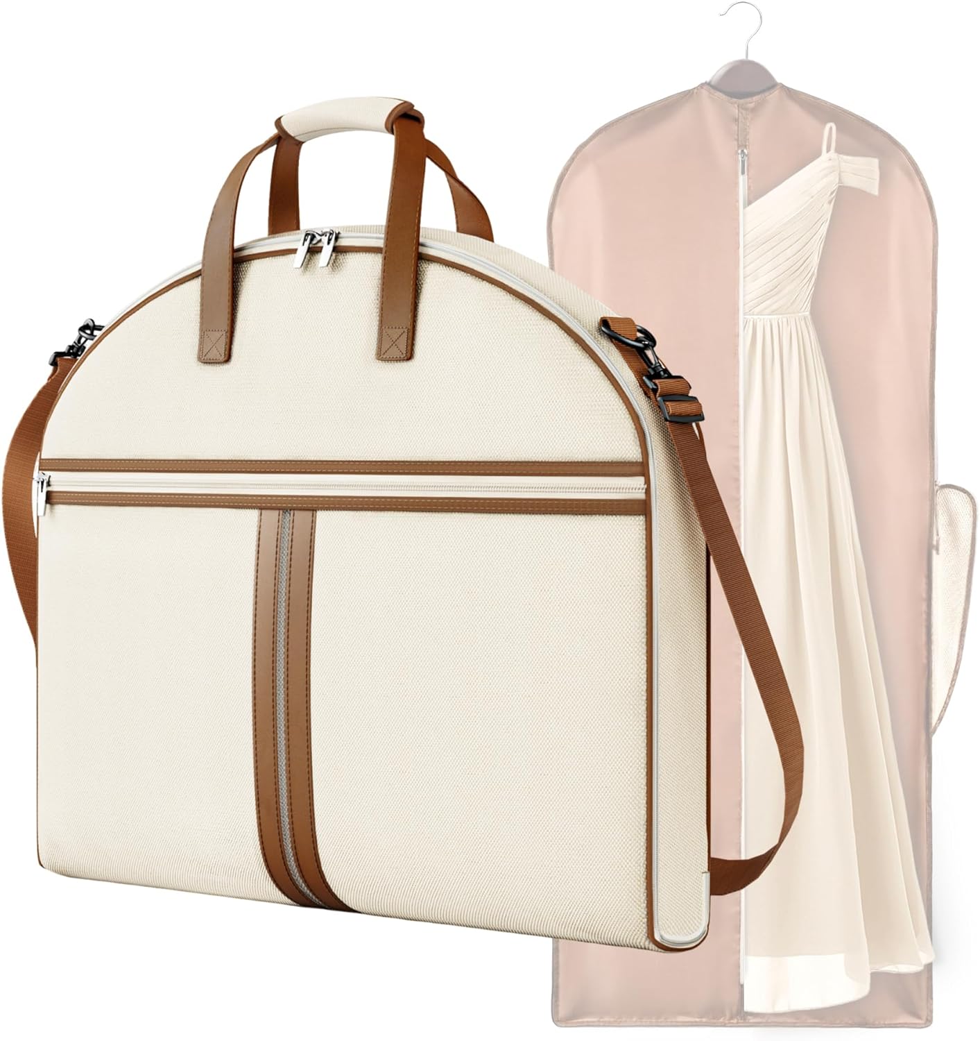 MISSLO Carry on Garment Bags for Travel for Women 56" Foldable Dress Bag with Large Pockets Bag Suit Luggage Garment Bag with Shoulder Strap for Business, Wedding, Hanging Clothes, Beige