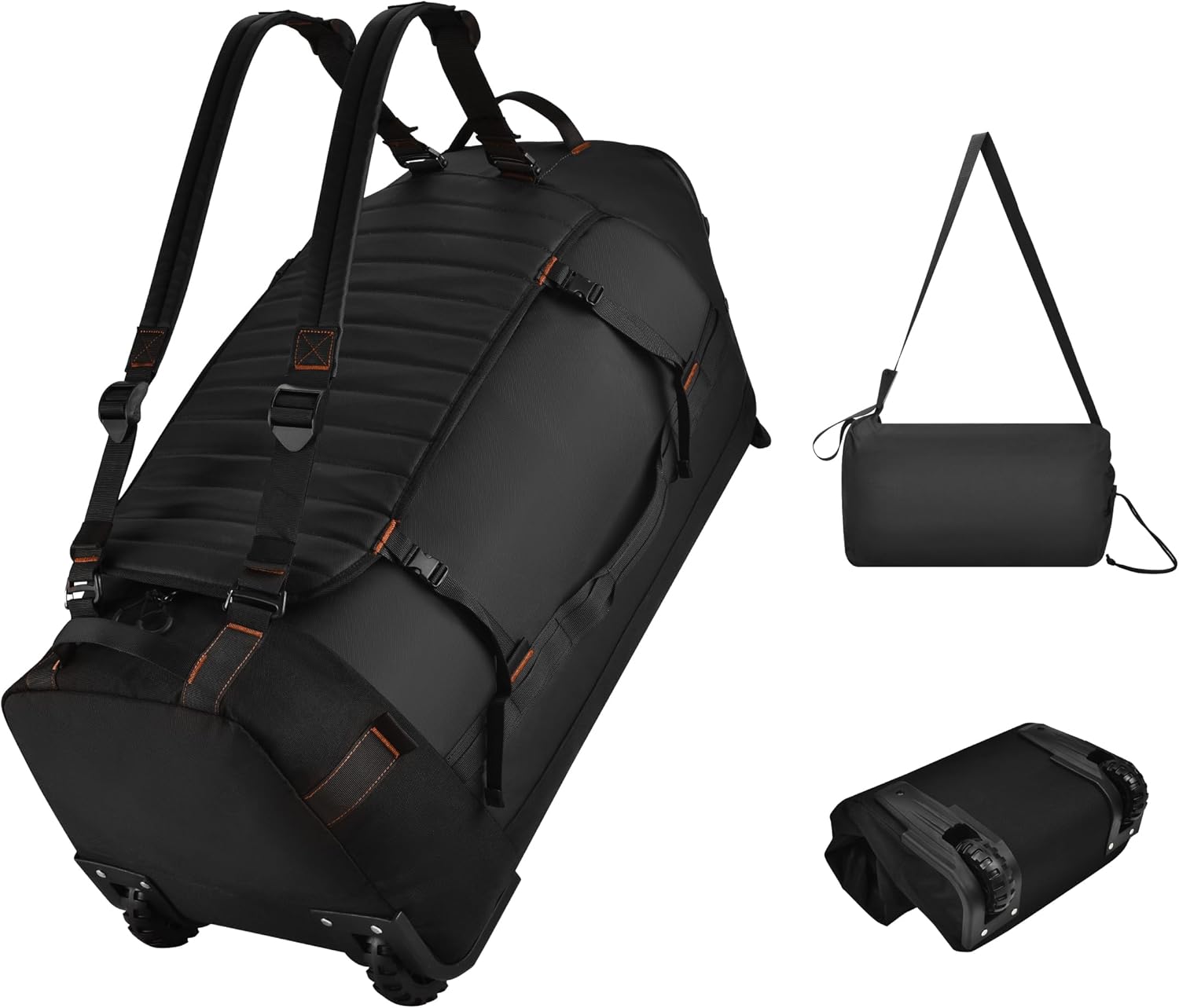 - DUAL FUNCTION: DUFFLE + BACKPACK Effortlessly switch between wheeled duffle and backpack with 4 secure hooks and detachable straps—perfect for travel, sports, or airplane carry-on use.