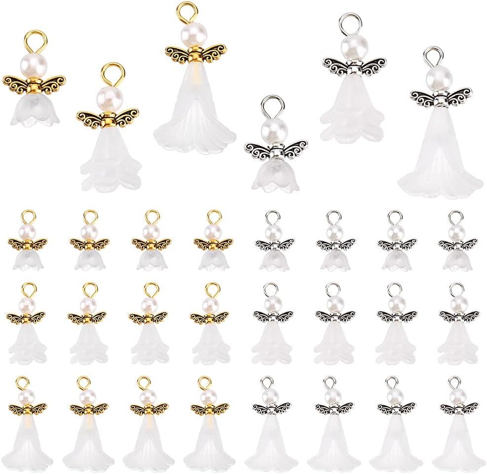 PH PandaHall 48pcs 6 Styles Angel Wing Charms, Angel Fairy Pendants White Angel Pearl Bead Wings Guardian Fairy Angel Pendants for Earrings Necklace Bracelet Keychain Jewelry, Golden/Platinum