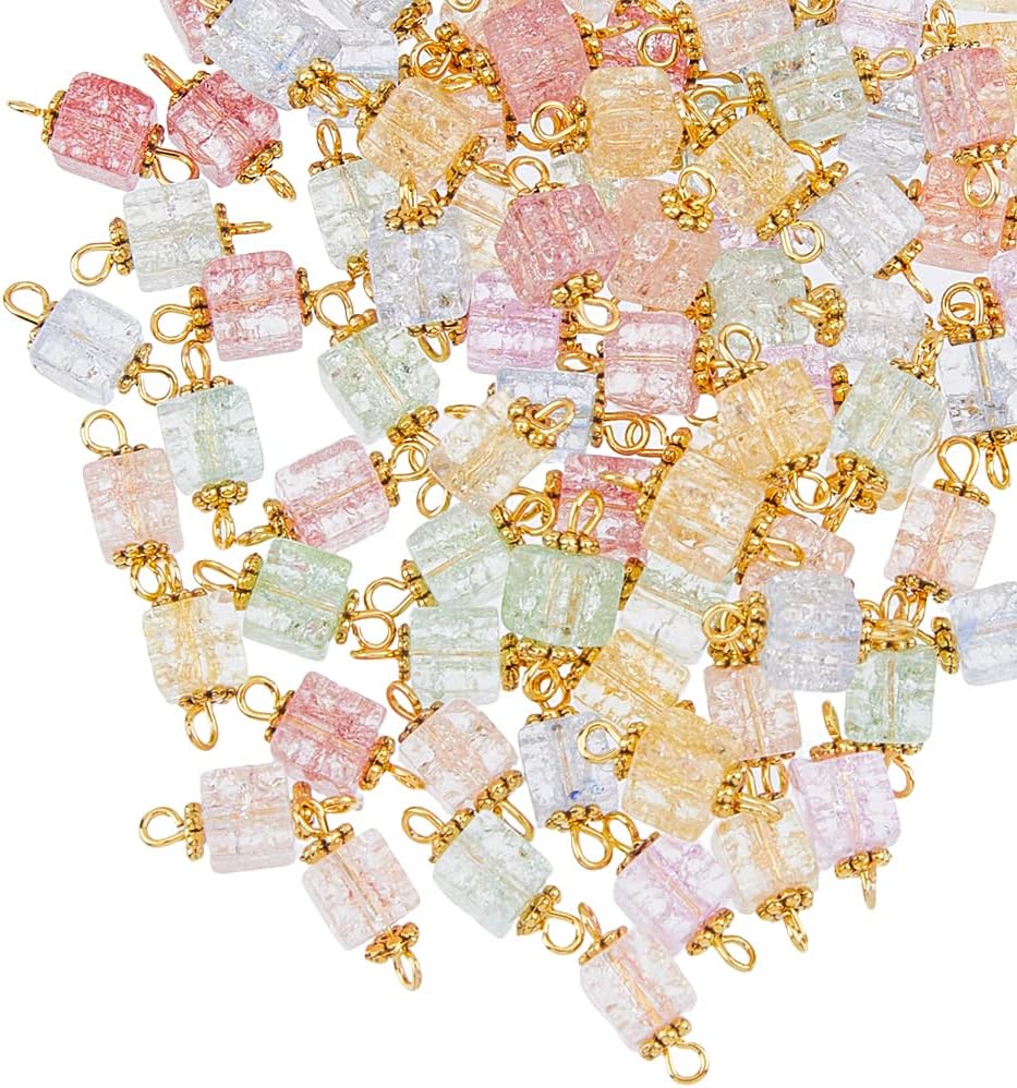 Crackle Glass Cube Charms Colorful Mixed Shape Connectors Charms with Loops Links Connectors for DIY Bracelet Earring Necklaces Jewelry Making