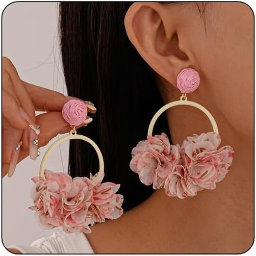 Fabric Flower Dangle Earrings for Women Exaggerated Boho Colorful Petal Earrings Vintage Camellia Earrings Fashion Simple Party Jewelry