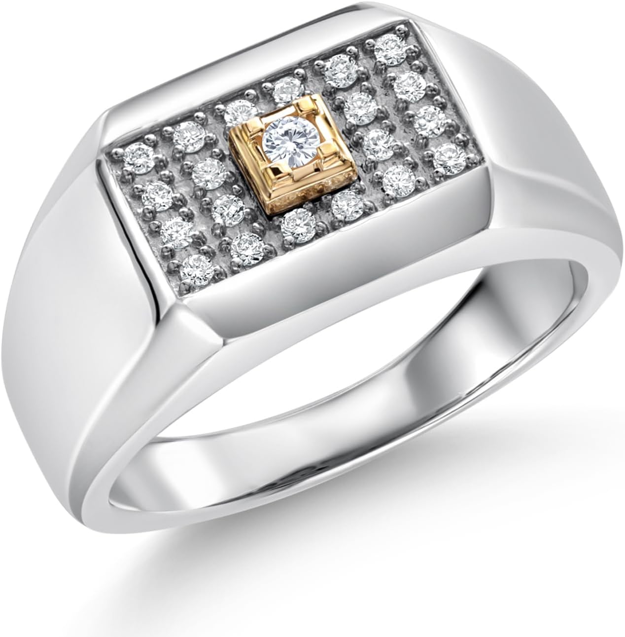 Gem Stone King Men's 925 Sterling Silver and 10K Yellow Gold White Lab Grown Diamond Ring for Men | 0.25 Cttw