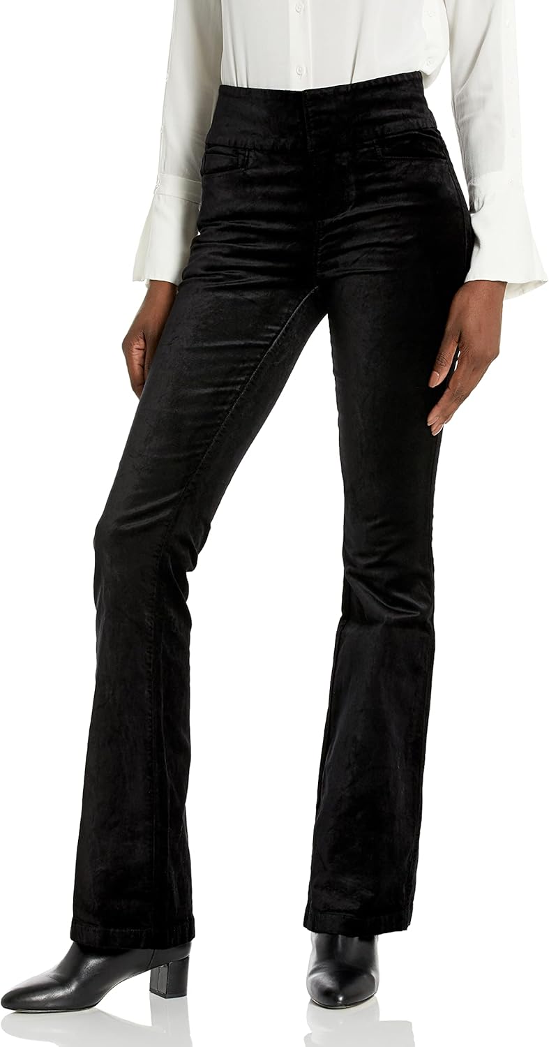 PAIGE Women's High Rise Lou Wide Clean Front Waist Band Flare in Velet in Black Overdye