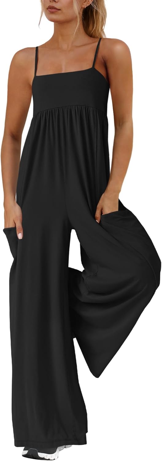 Yanekop Womens Overalls Loose Fit One Piece Jumpsuits Wide Leg Jumpsuits Spaghetti Strap Summer Jumpsuit with Pockets