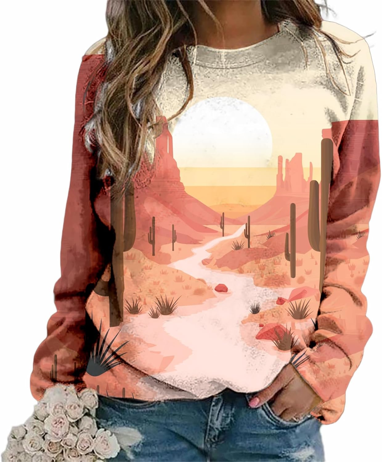 Graphic Sweatshirts for Women Trendy Pullover Crewneck Casual Long Sleeve Shirts
