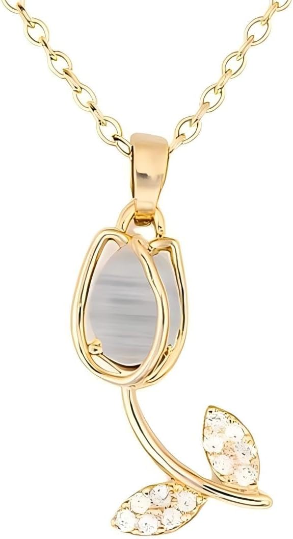 Delicate Tulip Necklace, Flower Fashionable, Clavicle Necklace with Zircons