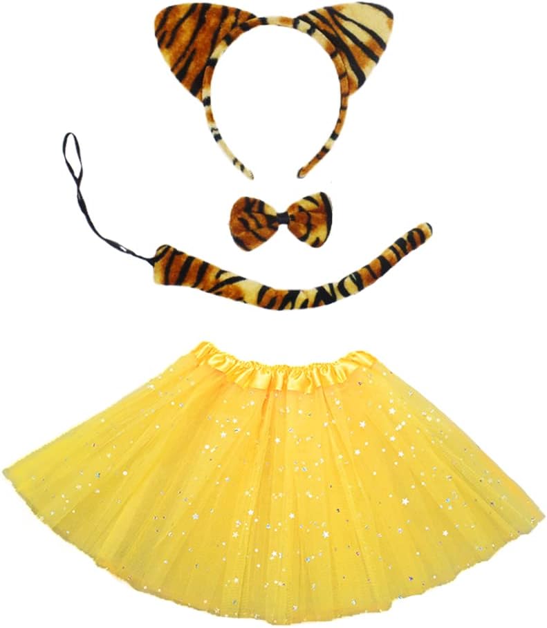 Weahre 4pcs Halloween Tiger Costume Set Tutu Skirt + Bowtie + Headband + Tail Dress Up Costumes for Halloween Christmas Animal Cosplay Birthday Party Favors Performance