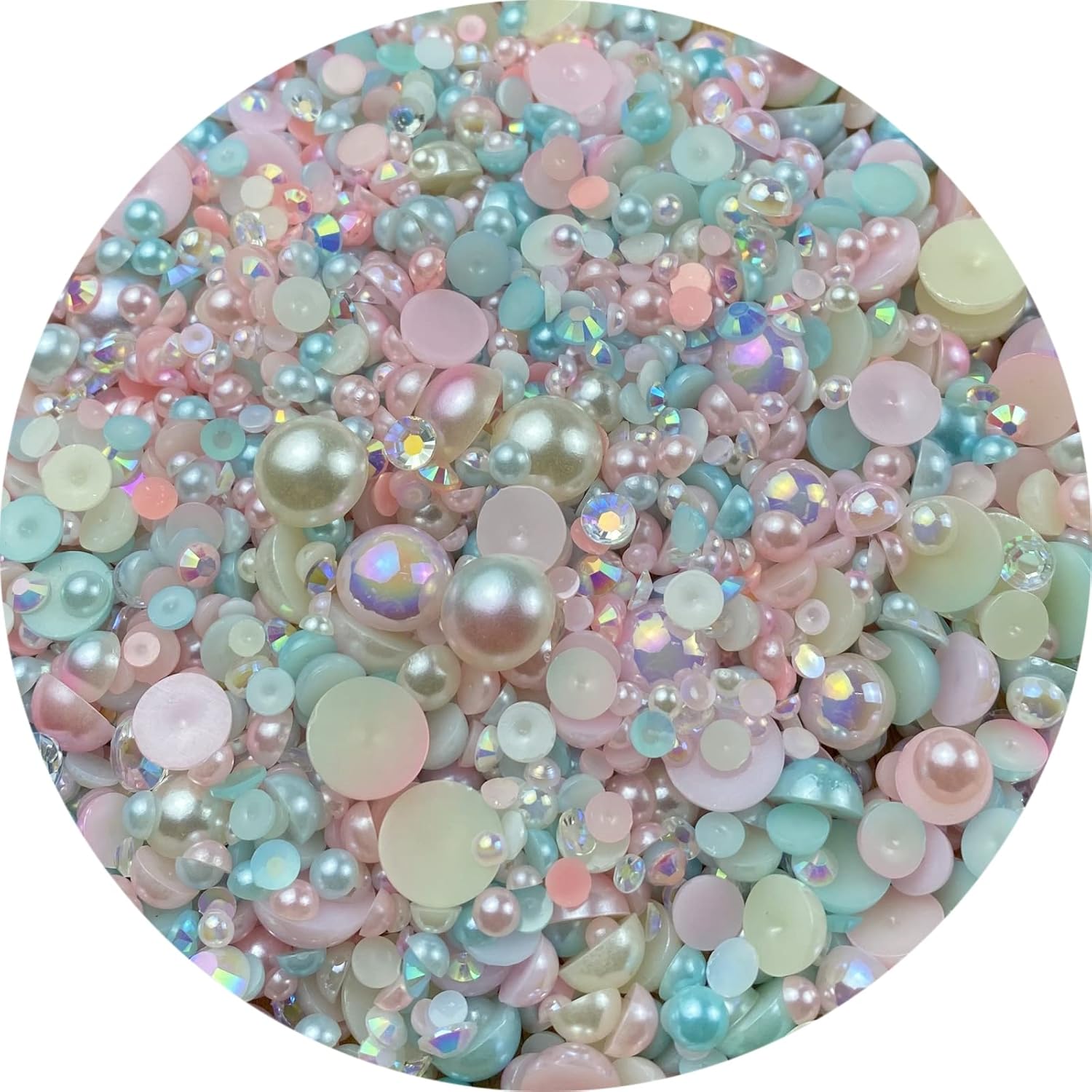 - Easy to Use: These mix resin half round pearls and rhinestones are great for your DIY project crafts,such as 3D manicure, flat manicure, eye makeup,clothes, shoes, jewelry, mobile phones, card crafts,good for beginners and professional nail salon supplies.