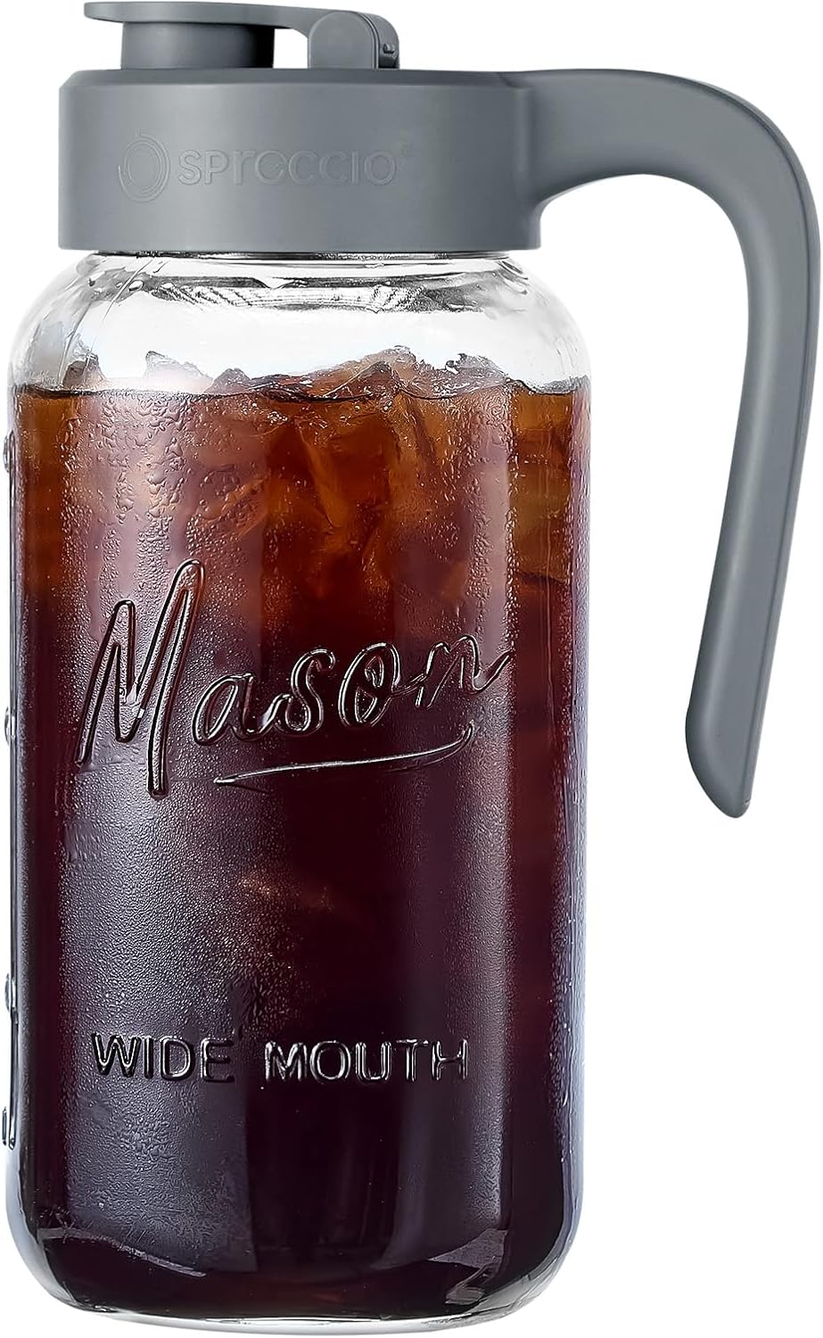 - Versatile Usage: Perfect as a sun tea pitcher, cold brew pitcher, ice tea pitcher, and more. This 2-quart (64 oz) mason jar pitcher is designed to meet all your beverage storage needs—one full pitcher, eight happy cups. Whether you're hosting a casual family dinner or a festive gathering with friends.