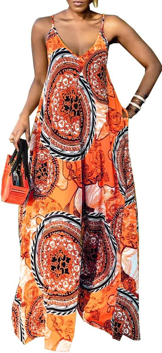 Glozeplus Sexy Jumpsuits for Women Dressy Wide Leg Floral Print Long Pants Sleeveless Rompers Jumpsuit with Pocket