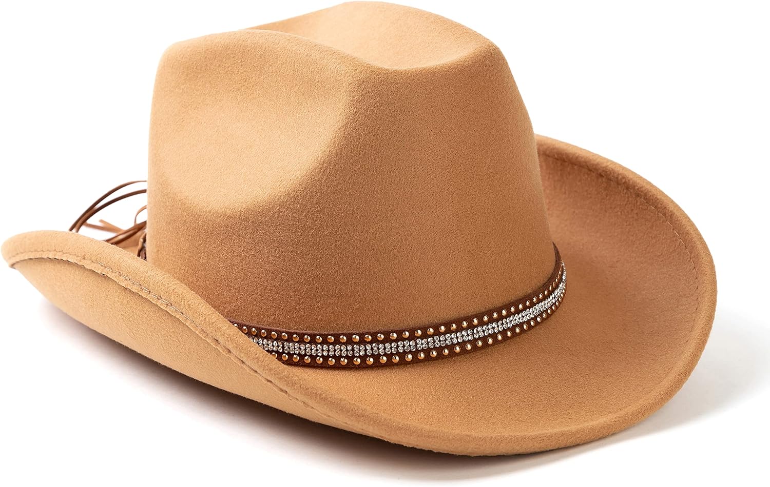 Lisianthus Men & Women's Felt Wide Brim Western Cowboy Outdoor Fedora Hats with Belt