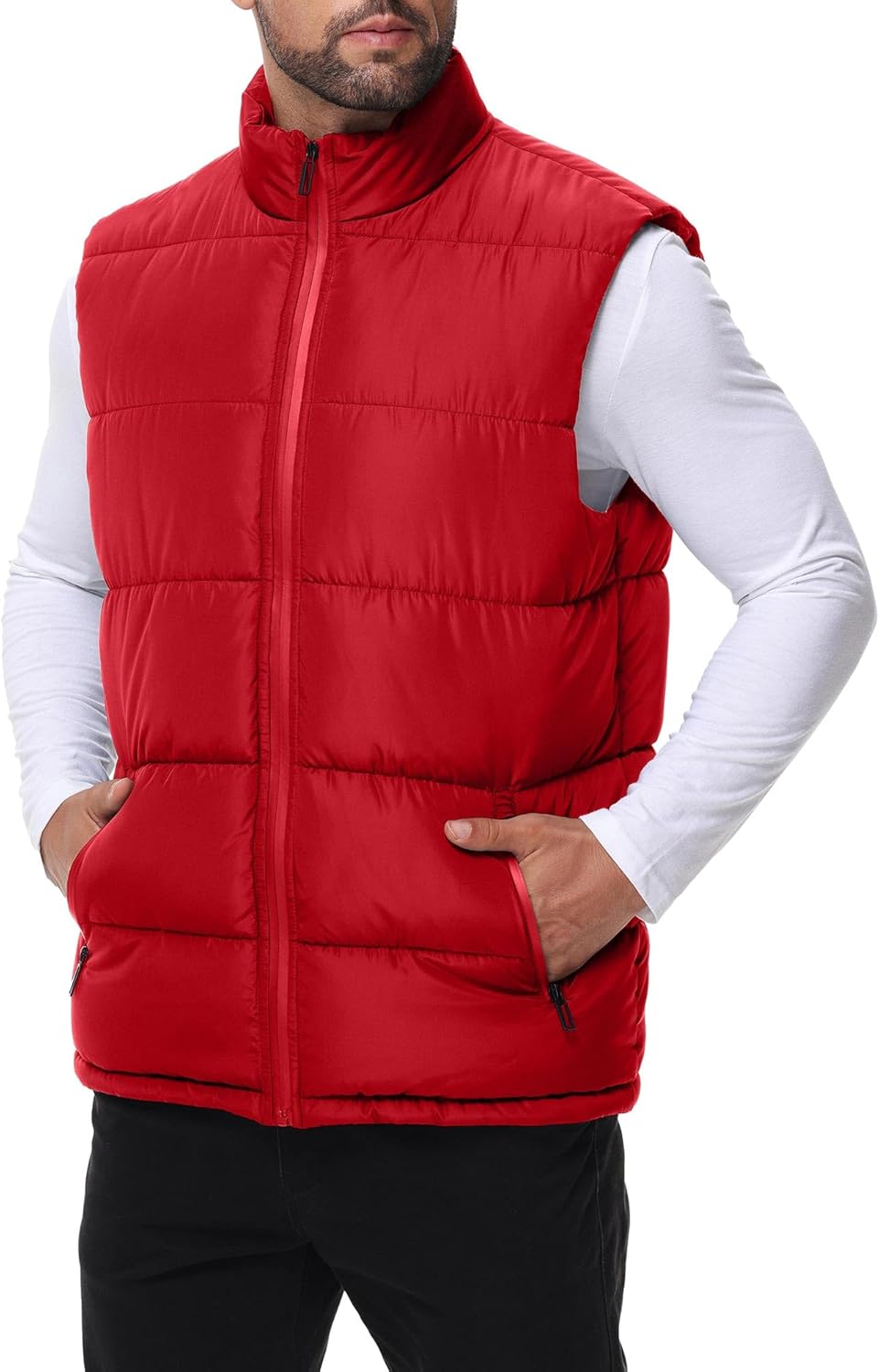 WHN Men's Puffer Vest Outerwear Winter Zipper Quilted Puffy Sleeveless Jacket Outdoor Size M to XXL