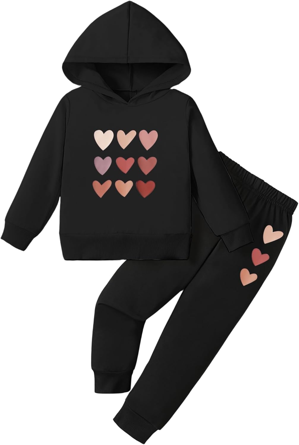 Cute Toddler Girls Sweatsuit - Valentines Heart Print Kids Fall Clothes Set Hoodie Sweatshirt Pants Spring Outfits