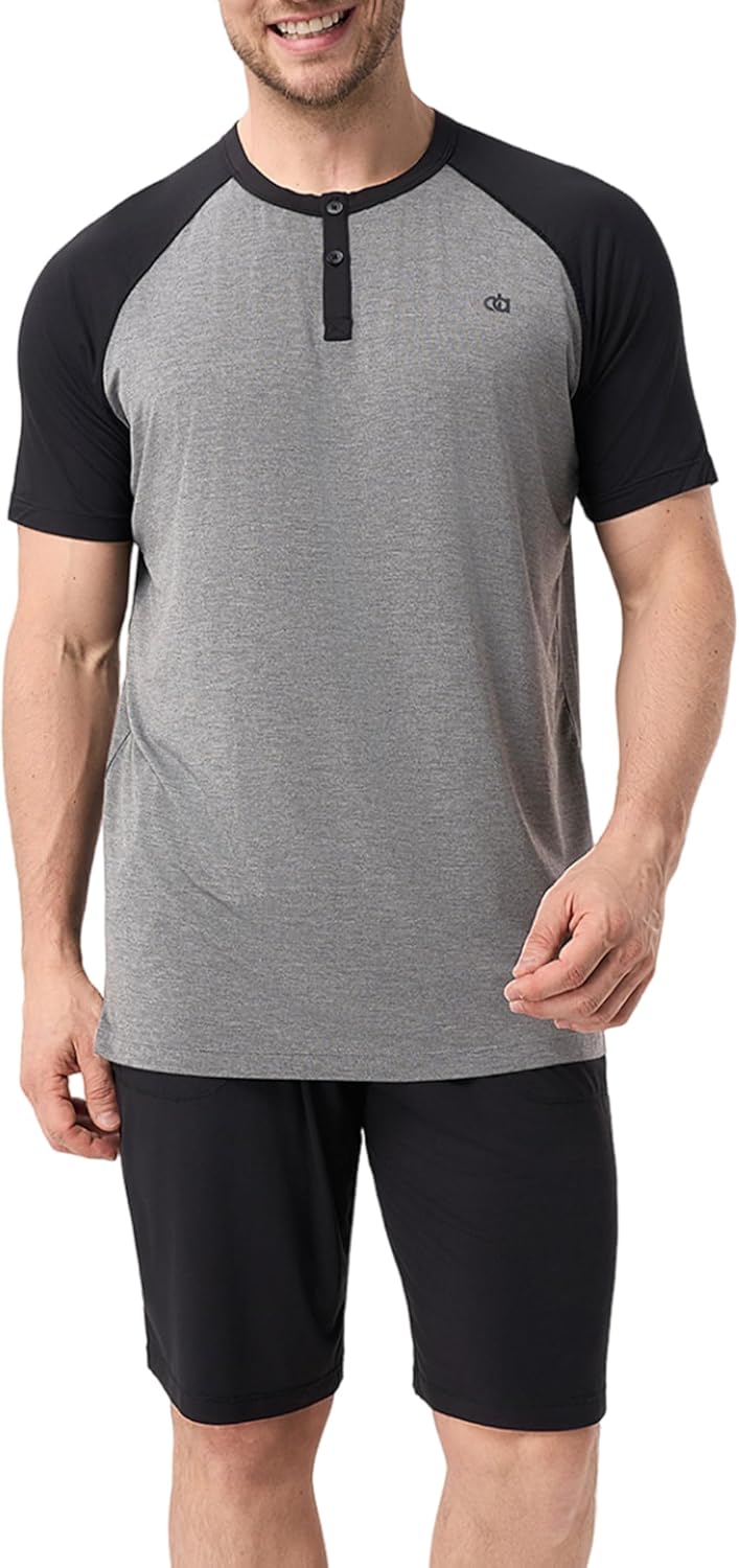 DAVID ARCHY Men's Pajamas Set Summer Cooling Loungewear Ultra-Soft Pjs Ligtweight Short Sleeves Shirts and Shorts Sleep Sets