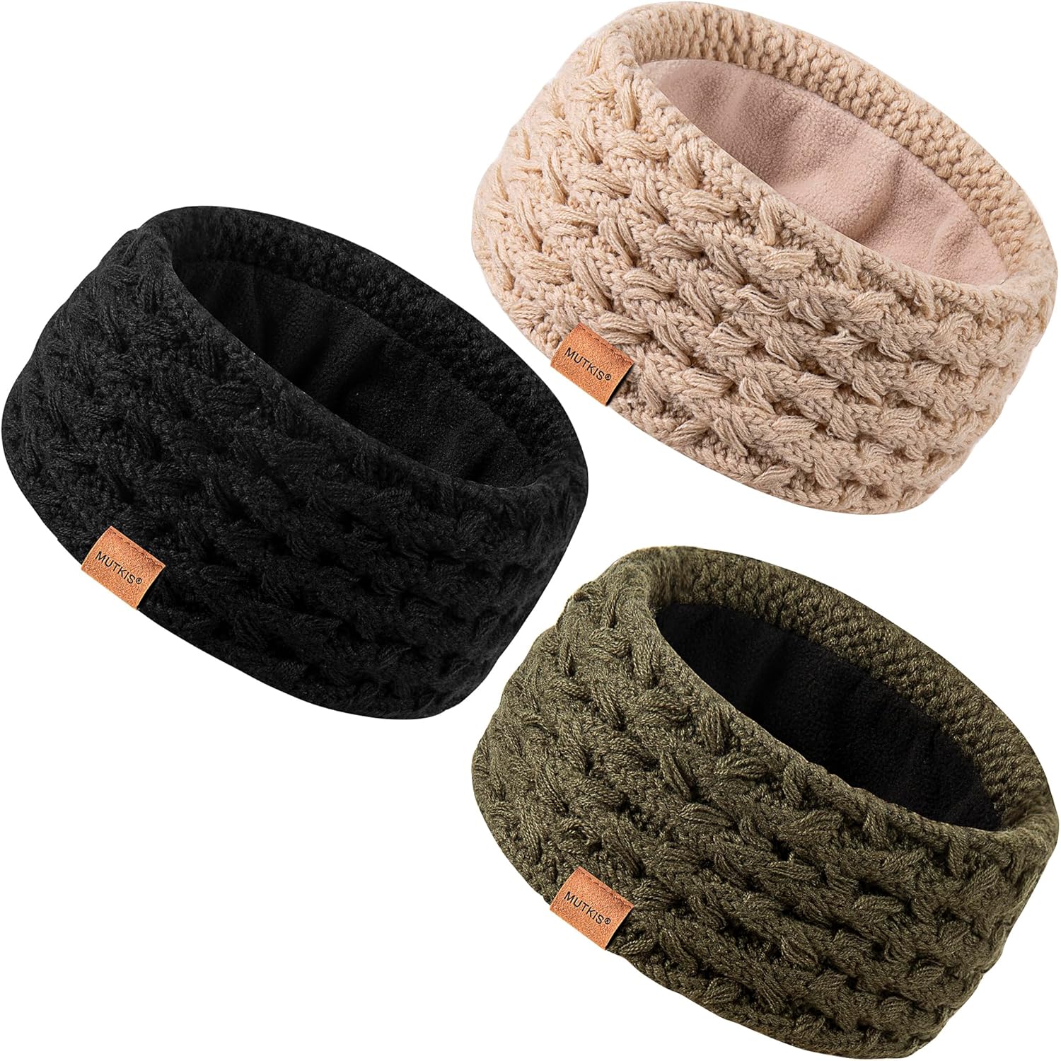 Winter Headbands for Women 3 Pack, Ear Warmers Cold Weather, Warm Ear Muffs Womens Stocking Stuffers Christmas Gifts