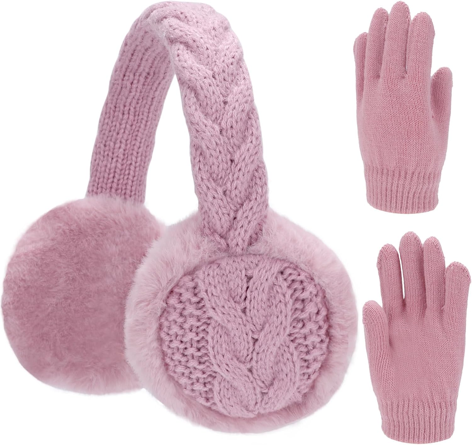 BEARAE Kids Knit Earmuffs Gloves Set Winter Soft Plush Ear Muffs Boys Girls Elastic Knit Mittens Outdoor Warm Ear Warmers