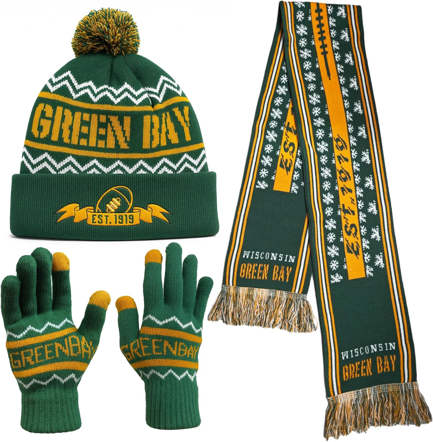 Vintage Classic Skull Cap Beanie Hat with Warm Gloves and Extended Scarf Cuffed Winter Hat Knit Comes