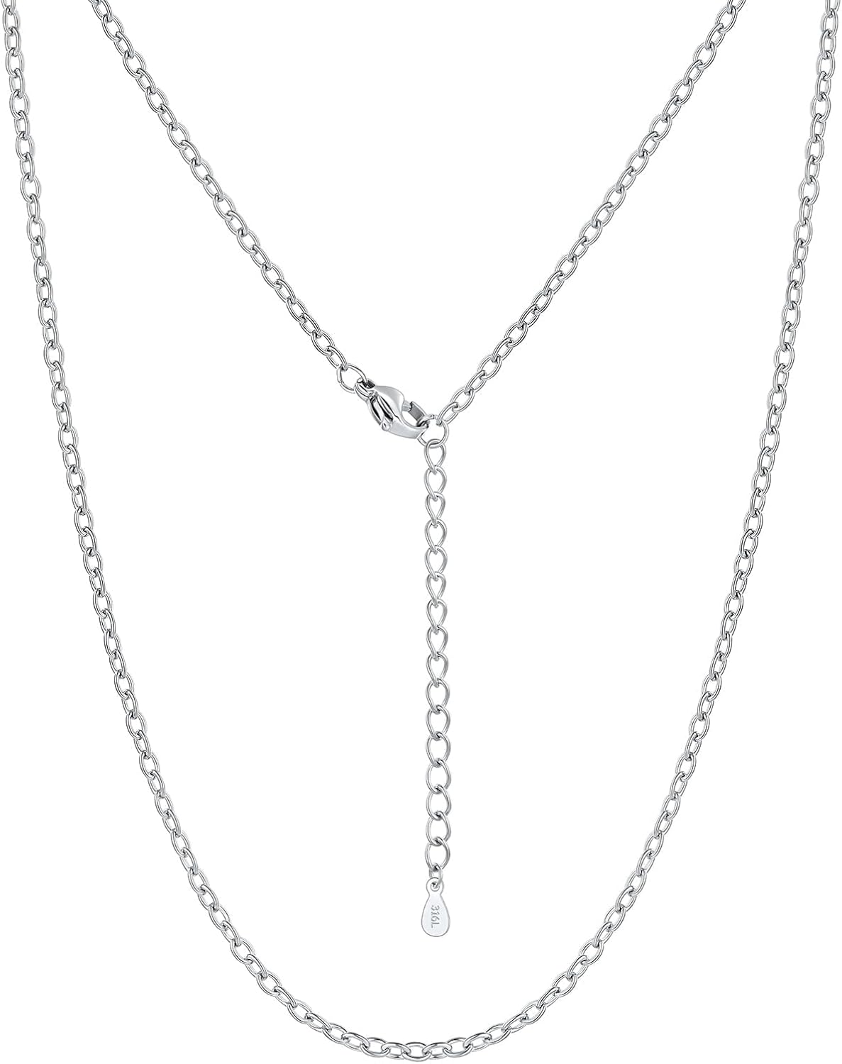Silvora Stainless Steel Necklace for Women,2MM Rolo Cable Chain Necklace-316L Stainless Steel/14K Gold/Black/Rose Gold Plated-Womens Chain for Pendant 14"-30" Length