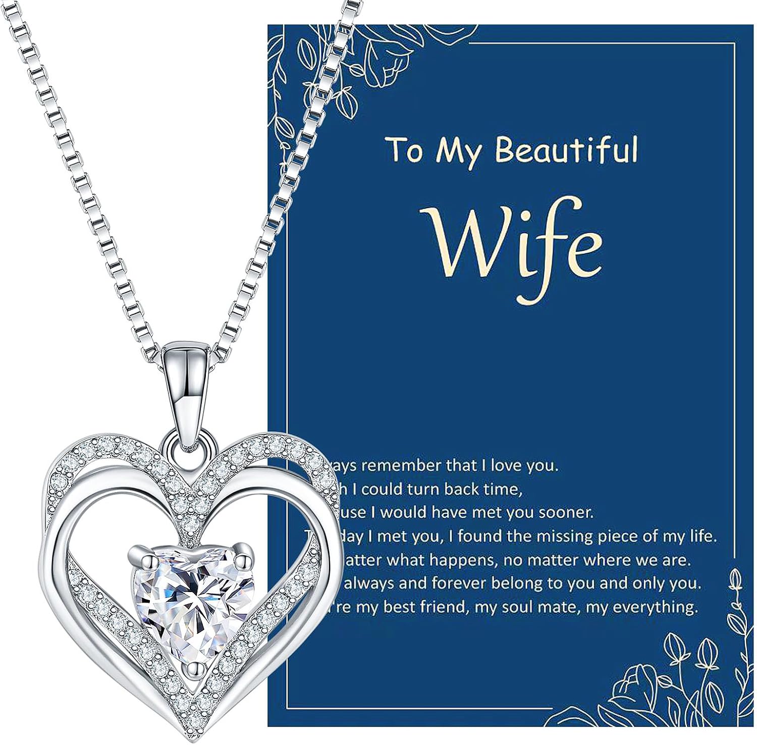 Gifts for Wife from Husband Anniversary Jewelry Gift for Her Love Heart D Color VVS1 Moissanite Diamond Pendant Silver 925 Necklaces for Wome Best Jewelry Present to Girlfriend for Birthdays Christmas Valentines