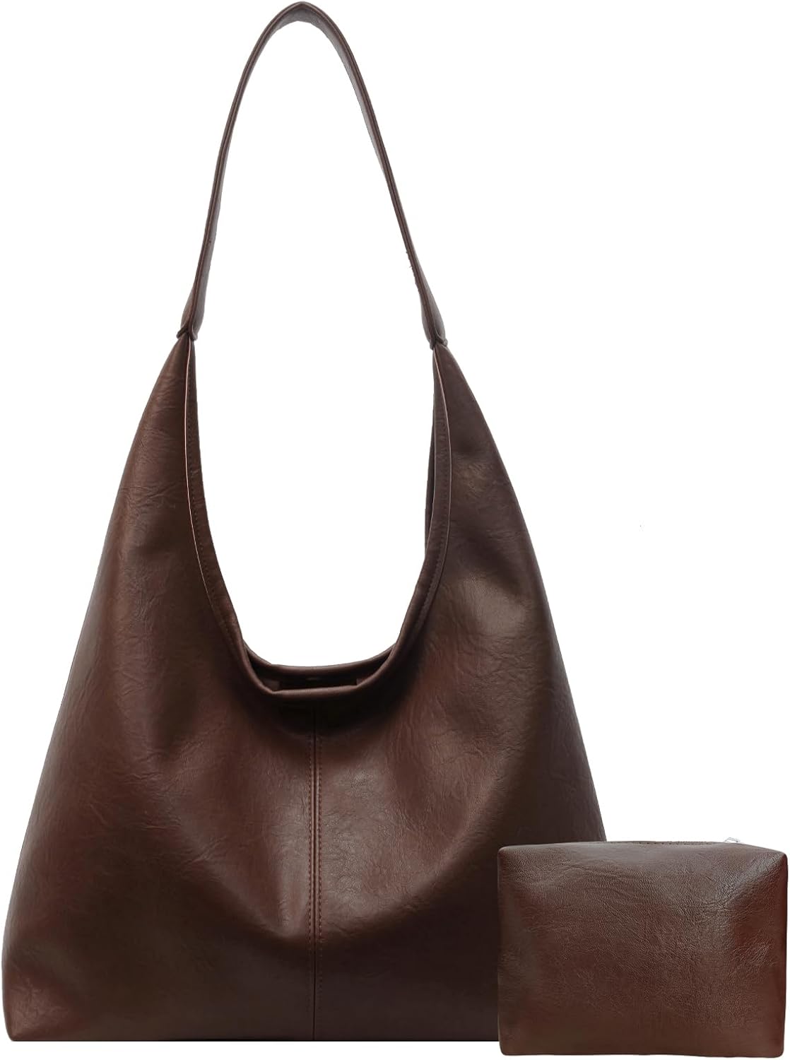 JueiXeoy Leather Hobo Bags for Women Slouchy Tote Bag Retro PU Leather Purse Soft Shoulder Handbags Large Work Tote Bag 2pcs