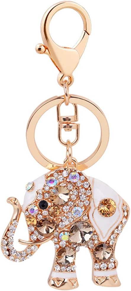 EASYA Cute Elephant Keychain Sparkling Crystal Rhinestones Keyring Pendant for Women Bag Charm (Champagne)