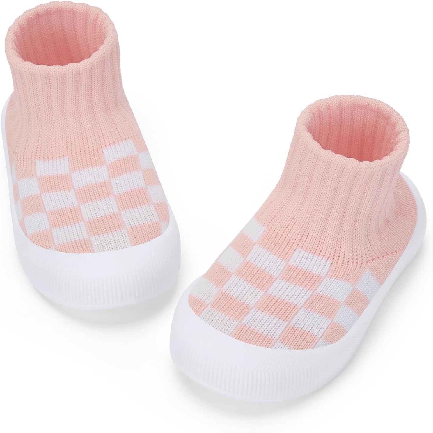 BACSAC Baby Boy Girl Sock Shoes Infant & Toddler Walking Shoes High Top with Knitted Checkered Upper Anti Collision Non-Slip Design Elastic Breathable for Indoor Outdoor 6-36 Months