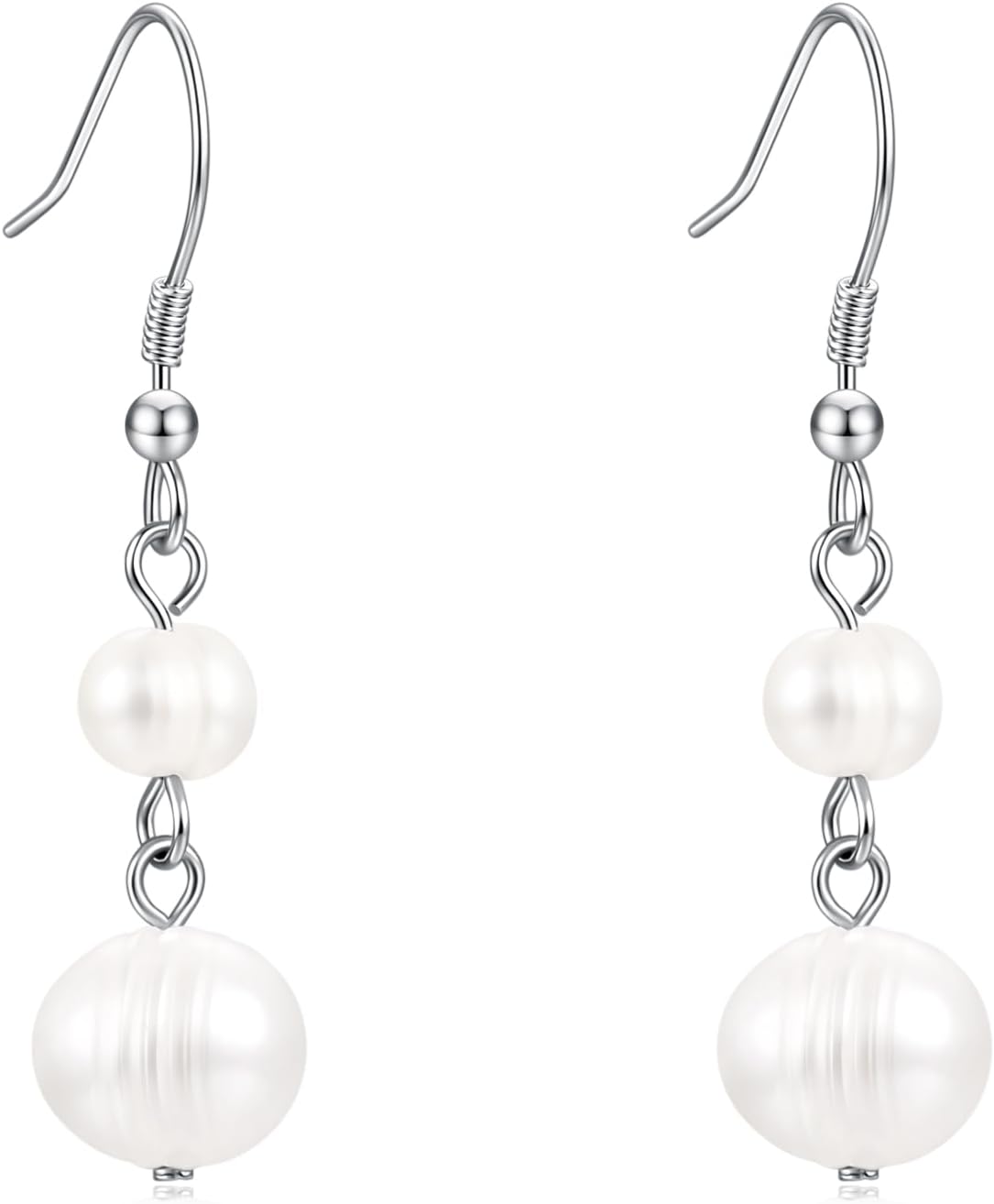 Freshwater Pearl Drop Dangle Earrings for Women with 925 Sterling Silver Hooks