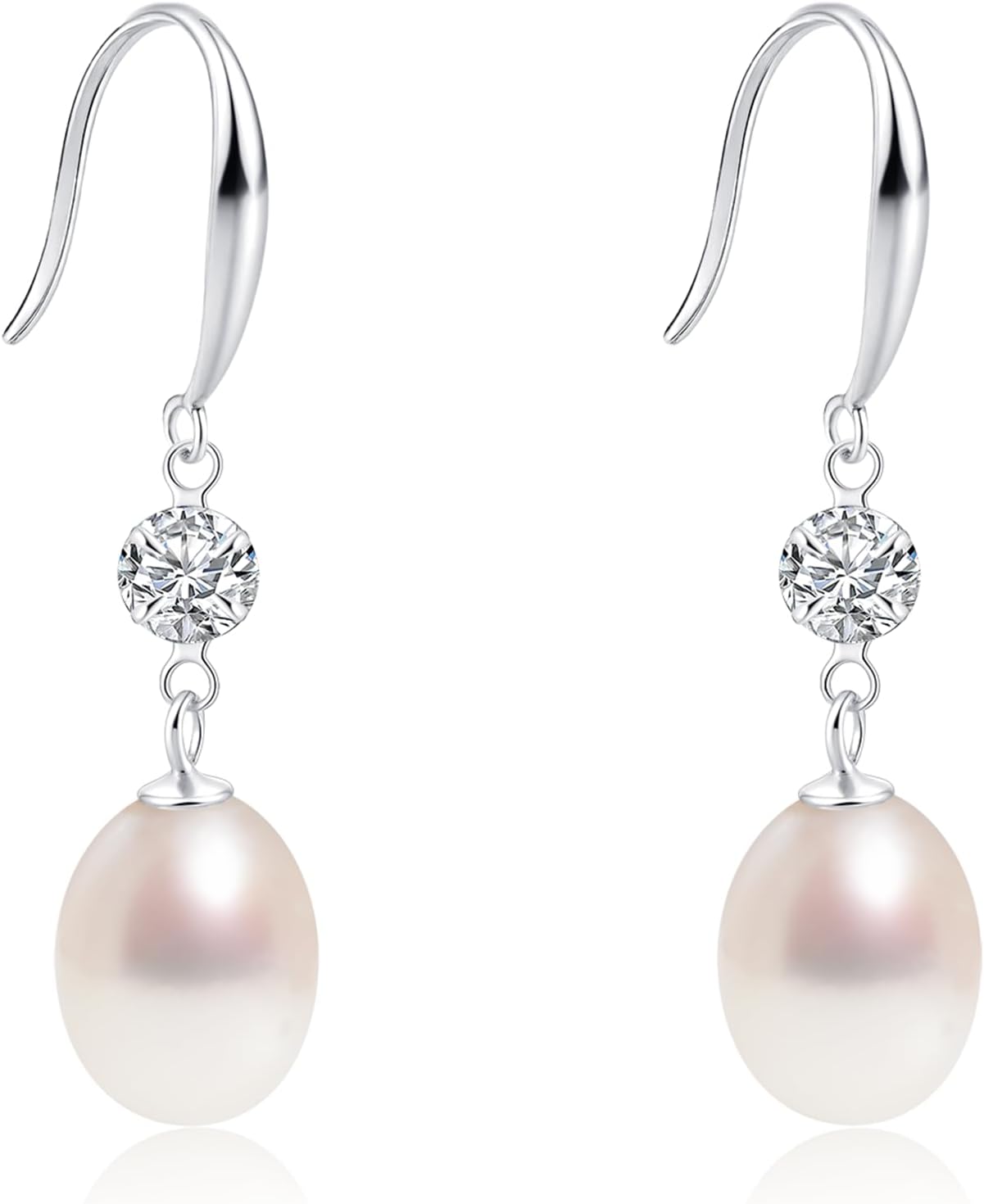 Pearl Earrings for Women, AAA+ Freshwater Teardrop Pearl & Sterling Silver CZ Dangle Earrings, Hypoallergenic Gift Idea