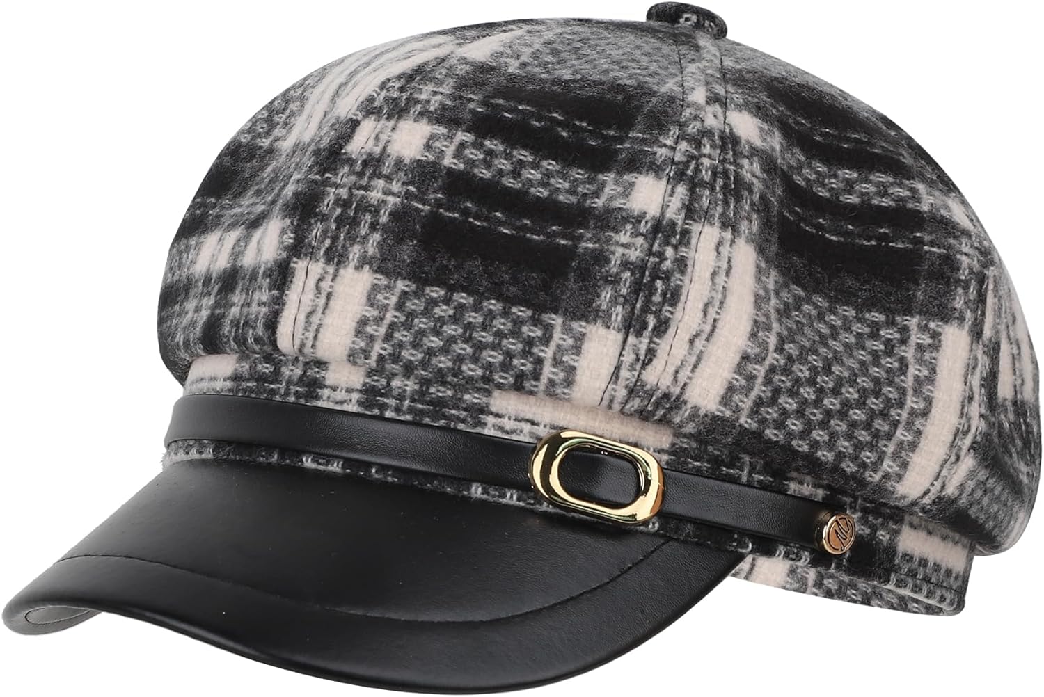 Women Fashion Octagonal Newsboy Hat, Retro Plaid Paperboy Cabbie Cap French Style Beret Hat for Ladies Girls