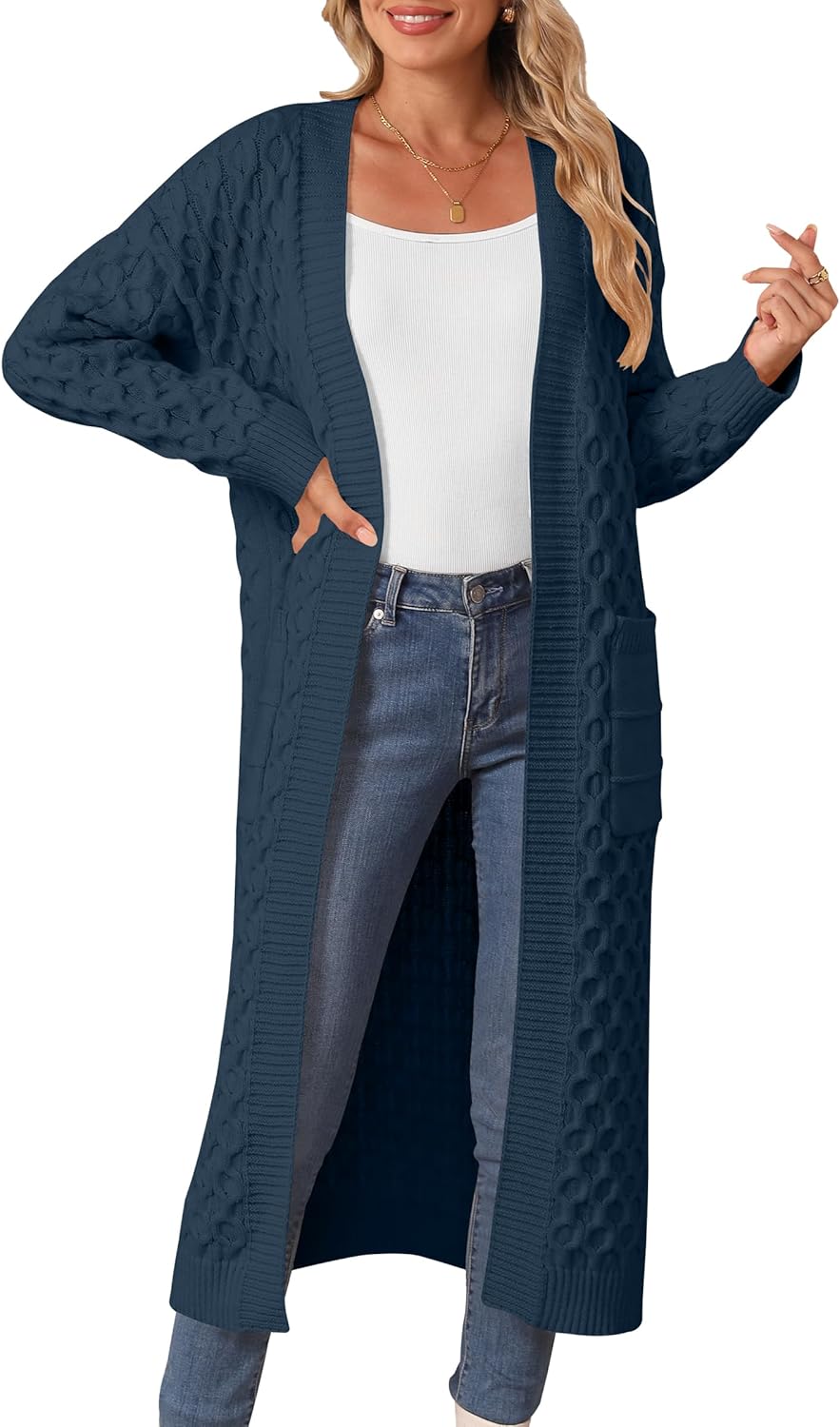 Womens Long Cardigan Sweaters Fall Open Front Coat Long Sleeve Cable Knit Maxi Outerwear Trendy Jacket Clothes
