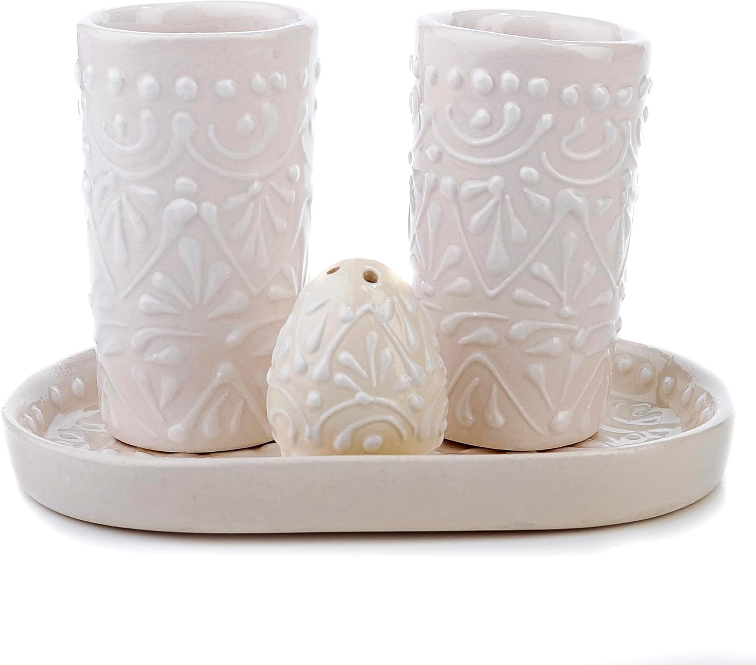 Talavera Tequila Shot Glasses with Tray & Salt Shaker (Set of 2) - Hand-Painted Authentic Mexican Gift Set (White Lace)