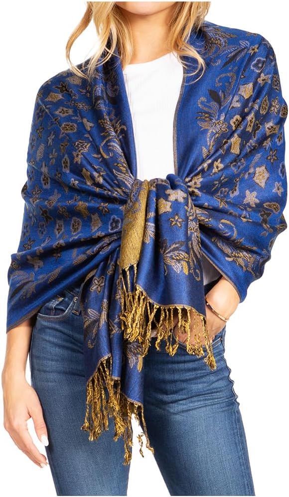 Sakkas Alessa Women's Silky Soft Reversible PaisleyPrint Pashmina Scarf Shawl Wrap