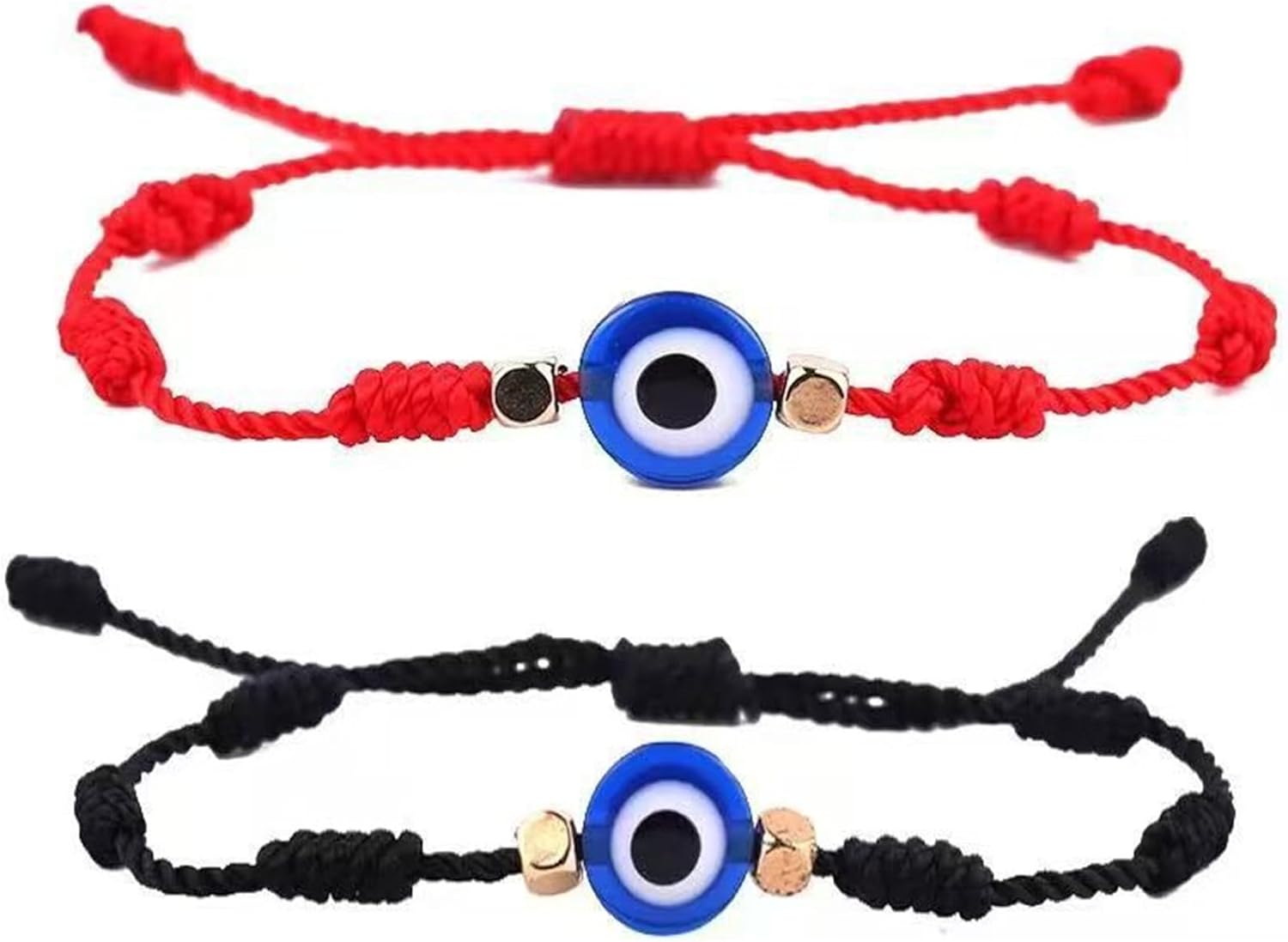 2 Pieces Evil Eye Bracelet Handmade Adjustable Red String Protection Bracelet Women Men