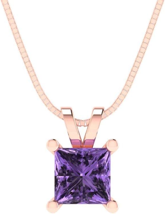 Clara Pucci 14K Rose Gold Plated Solitaire 18" Box-Chain Necklace - Sterling Silver 2.5ct Princess Cut Alexandrite Pendant
