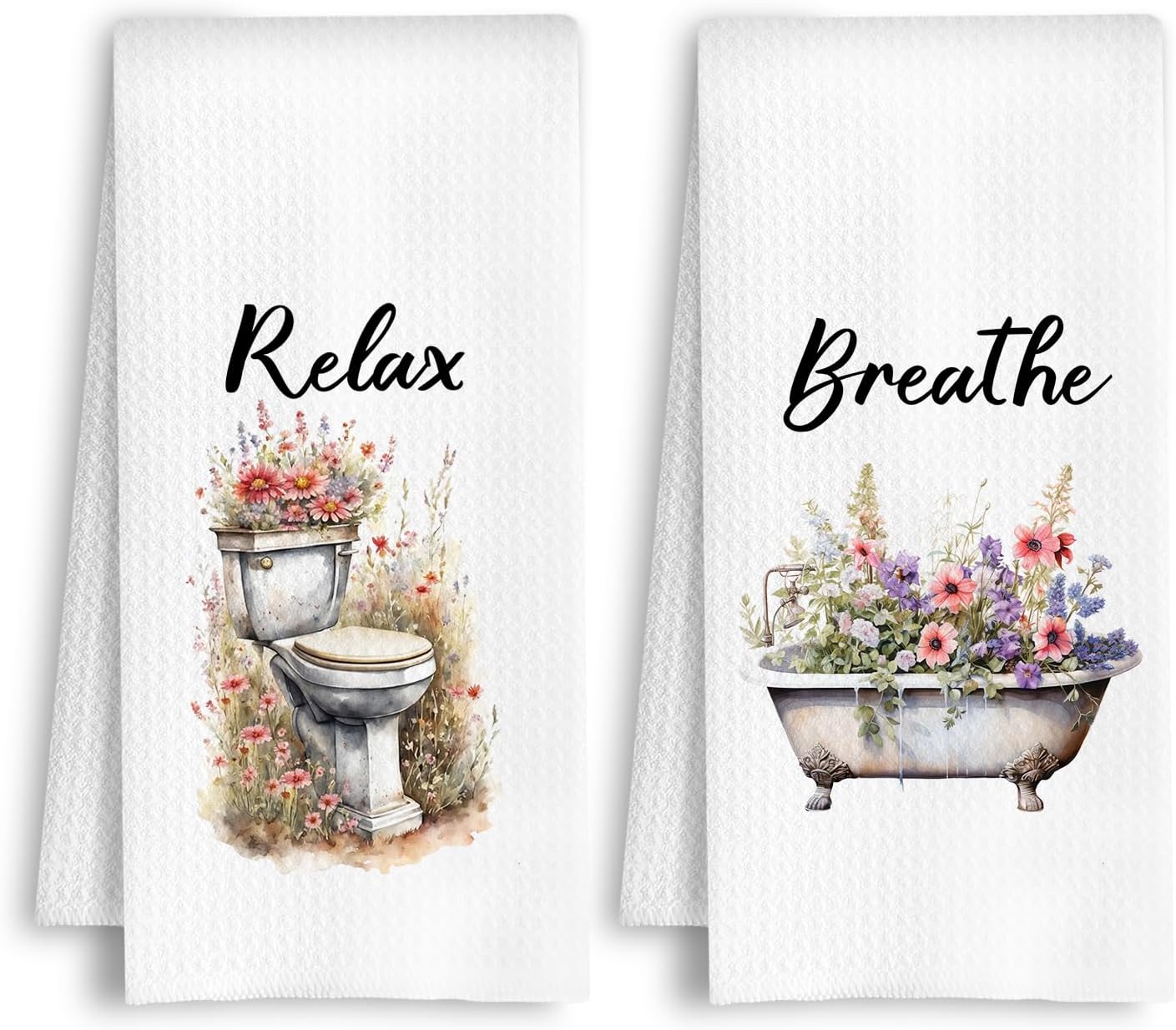 Farmhouse Floral Bathroom Hand Towels, Botanical Bathroom Decor, Vintage Cottagecore Flower Relax Breath Decorative Hand Towels for Bath Room Washroom, 16x24 Inches Set of 2