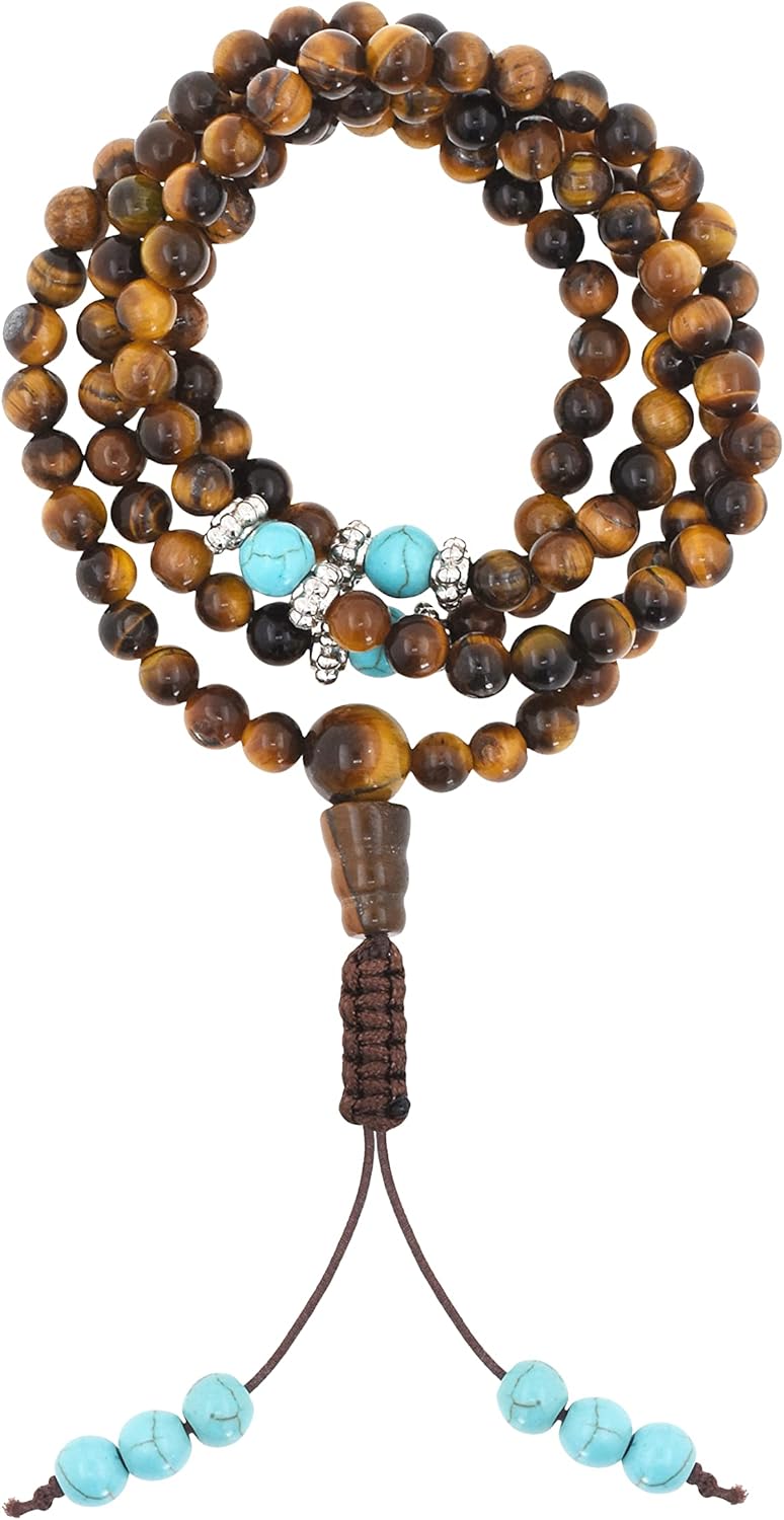 Mudra Crafts Buddhist Prayer Beads Tiger Eye Mala Beads 108 Necklace Bracelet - Tiger Eye Prayer Beads for Men Women - Tibetan Mala Beads for Yoga Meditation