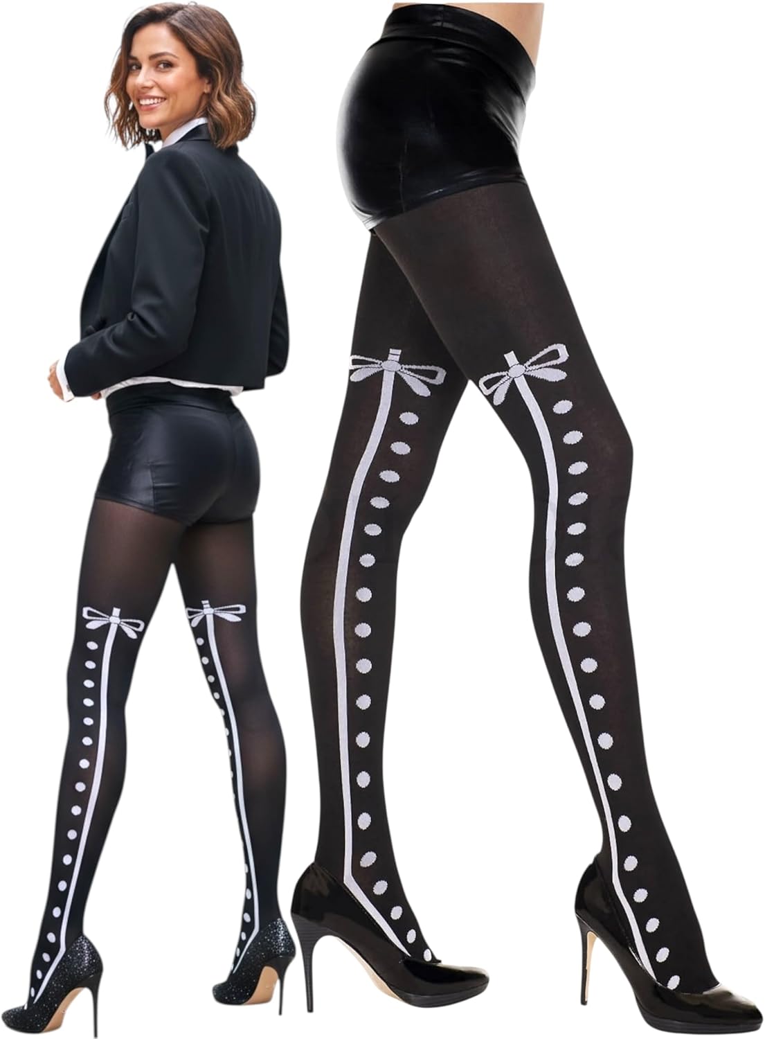 ToBeInStyle Women's Black Spandex Opaque Pantyhose With White Tuxedo Accent
