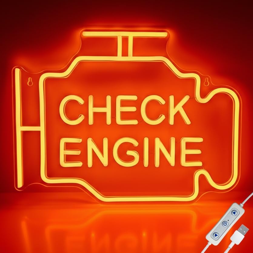 - Perfect Man Cave Statement : Use this unique Check Engine neon sign to upgrade your garage, workshop, man cave, auto shop. This check engine neon light injects your love for car culture, which adds bold and iconic car humor to any car guys's space or home bar and creates an enjoyable atmosphere for you and your friends.