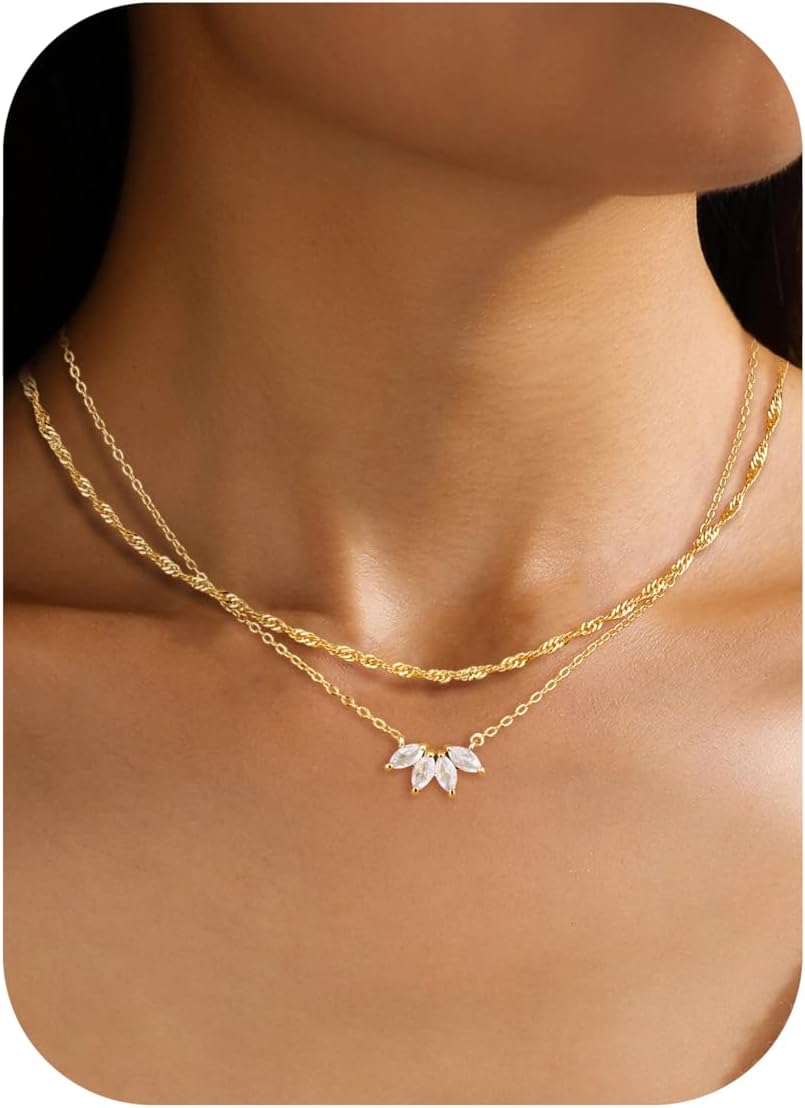 ORAZIO Layered Gold Necklaces for Women Non Tarnish, Dainty 14K Gold Plated Cubic Zirconia Necklace Stack Layering Chain Necklaces Stackable Cute CZ Pendant Choker Necklace for Women,G-4 Flower Petal