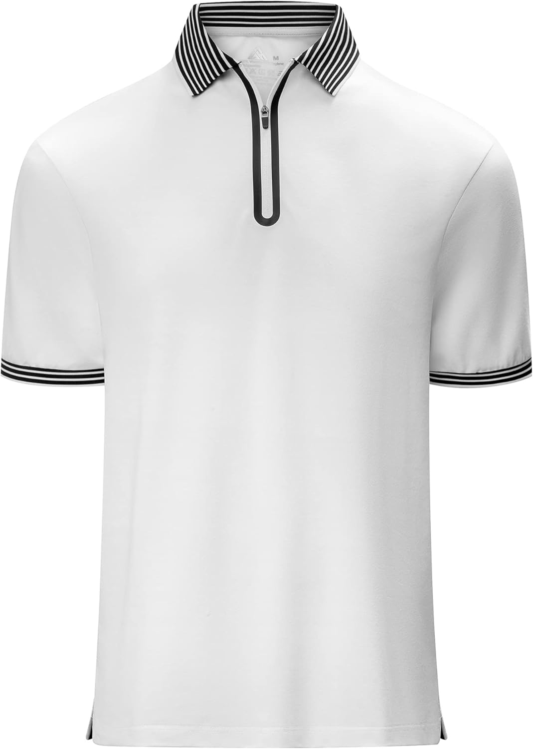 V VALANCH Mens Zipper Polo Shirts Short Sleeve Moisture Wicking Outdoor Golf Shirt Collared Athletic Tennis Polo