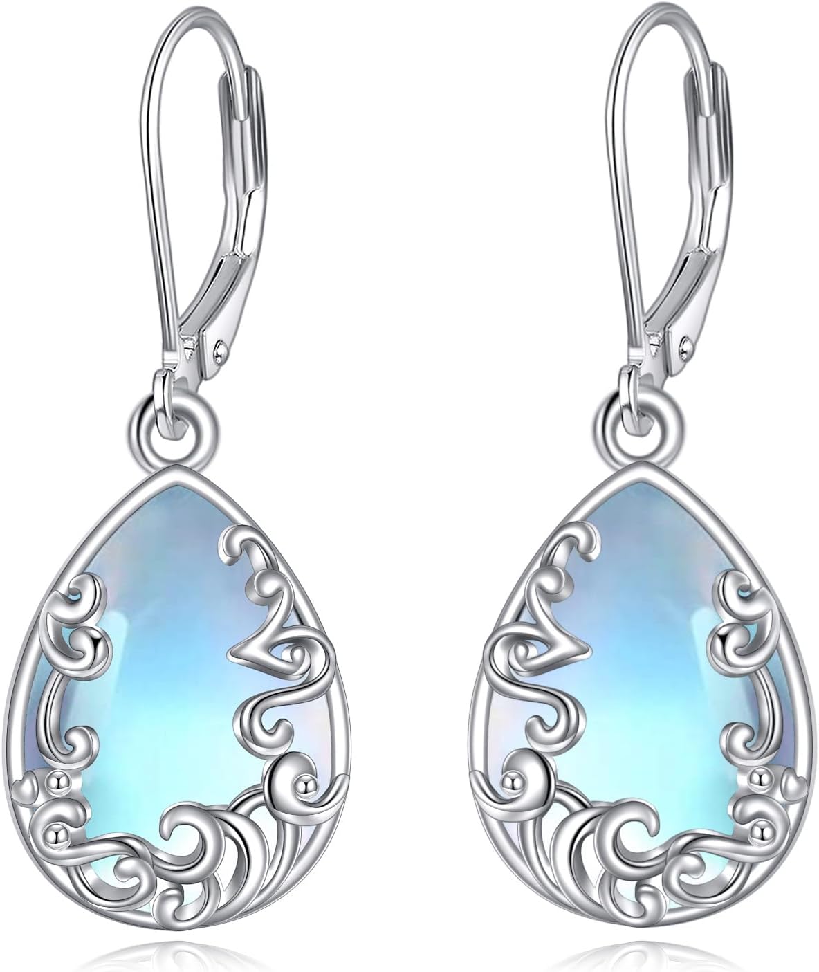 Moonstone Earrings 925 Sterling Silver Filigree Dangle Earrings Moonstone Jewelry Christmas Valentines Day Gifts for Women