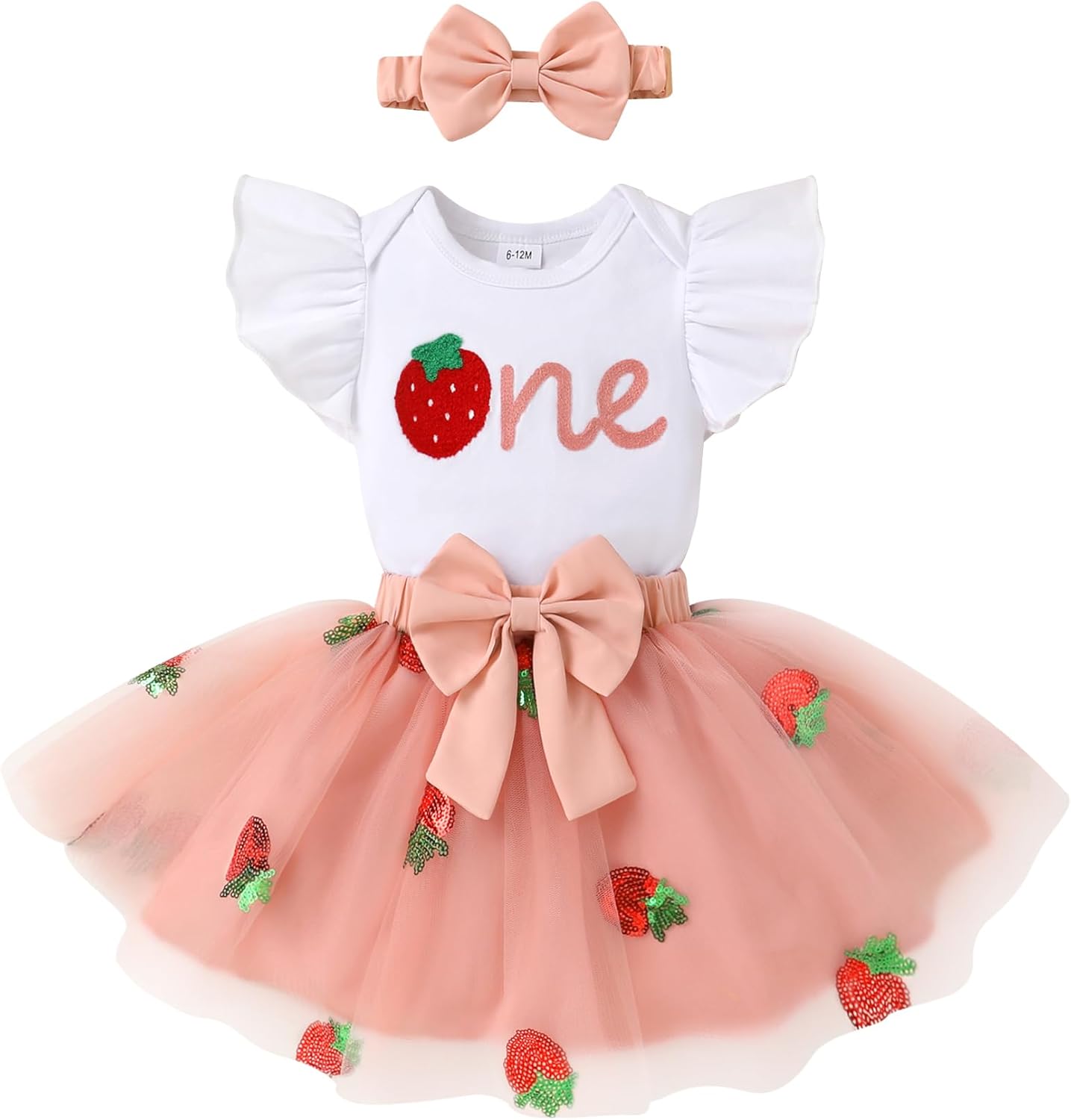 YOUNGER TREE Baby Girl 1st Birthday Outfits One Year Old Clothes Romper Tutu Cake Smash Skirt with Headband Baby Girl Gifts