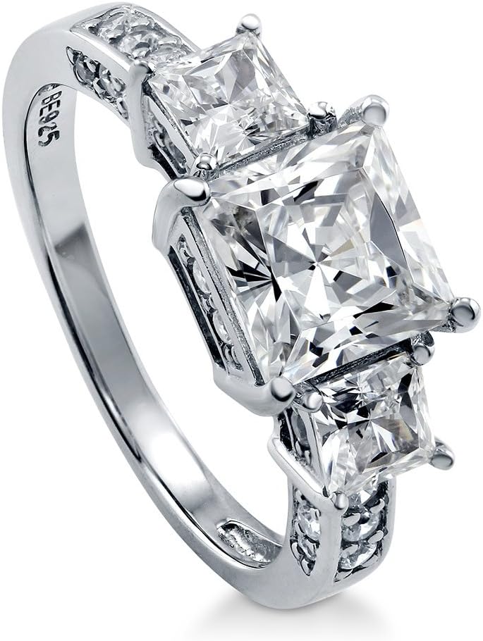 BERRICLE Sterling Silver 3-Stone Wedding Engagement Rings Stackable Band Ring Set for Women, Cubic Zirconia CZ - Asscher, Cushion, Oval, Princess, Round Cut