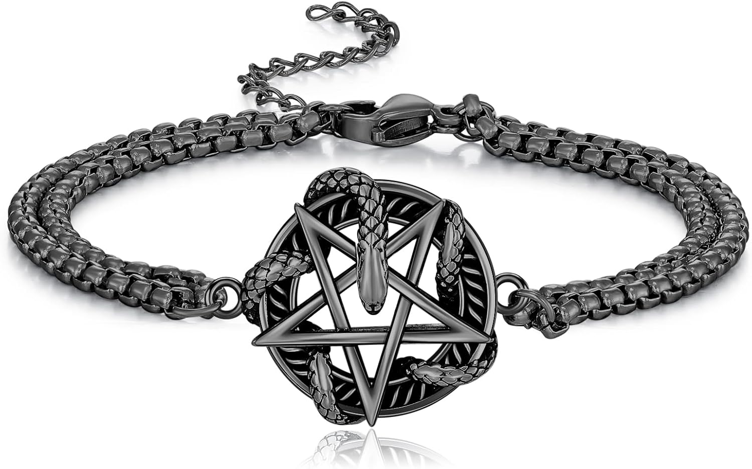 Snake Bracelet for Women Men 925 Sterling Silver Evil Eye/Pentagram Snake Bracelet Adjustable Vintage Jewelry Gift for Women Men