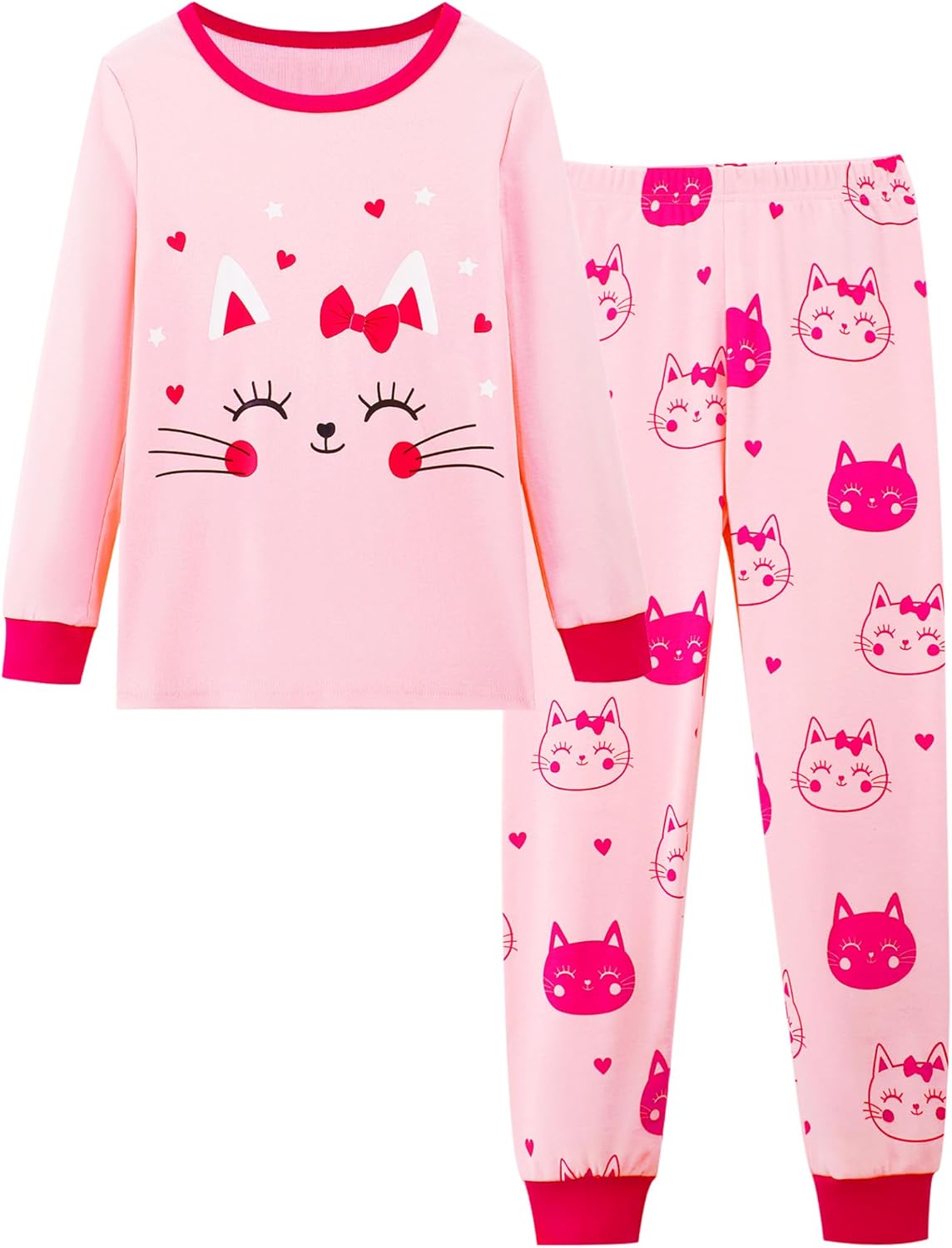 Mikrdoo Girls Pajamas Kids Soft Cute Cotton Long Sleeve 2 Piece Stretchy Snug Fit Pjs Set for Girls Size 4-14Y