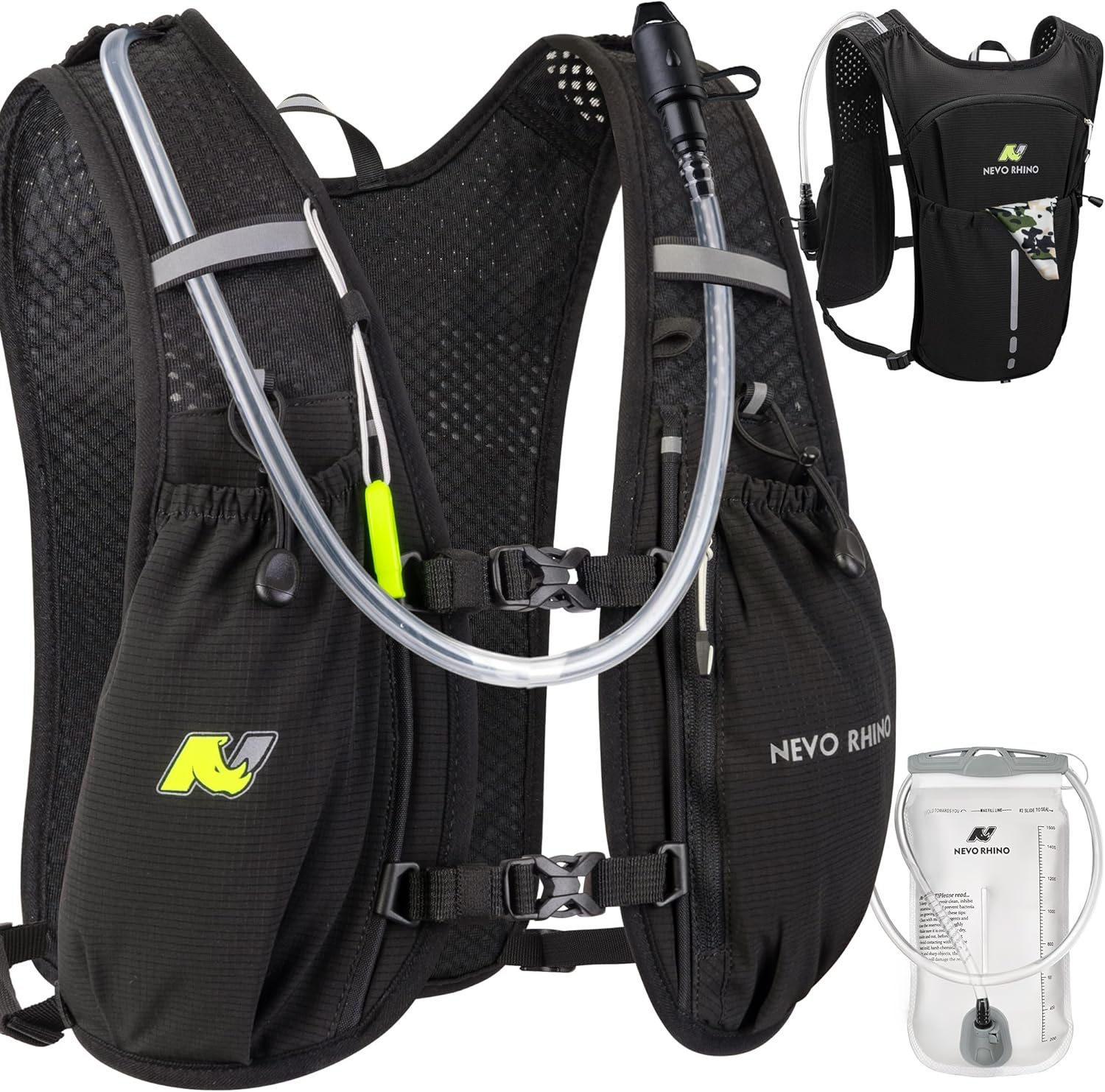 - After sale: N NEVO RHINO running vest for men with 1.5L water bladder. If you have any questions about this hydration running vest, please reach out to us, we will reply within 24 hrs