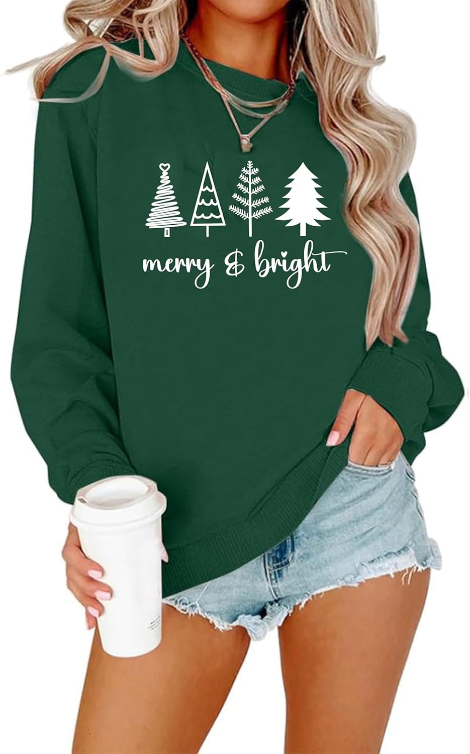 Womens Christmas Sweatshirt Christmas Tree Graphic Long Sleeve Shirts Xmas Holiday Pullover Tops Blouse