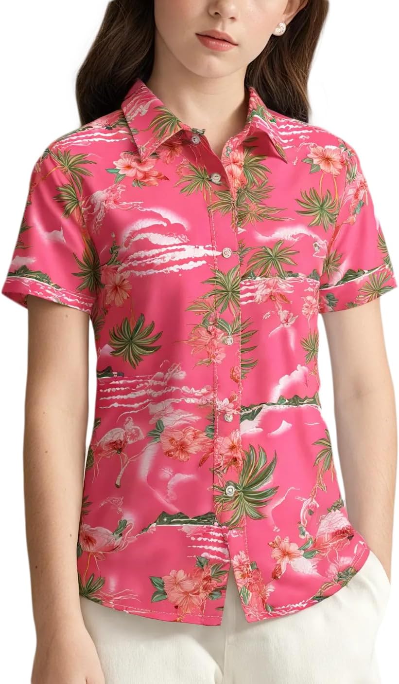 SSLR Big Girls Hawaiian Shirt Beach Tropical Summer Casual Short Sleeve Button Down Shirt